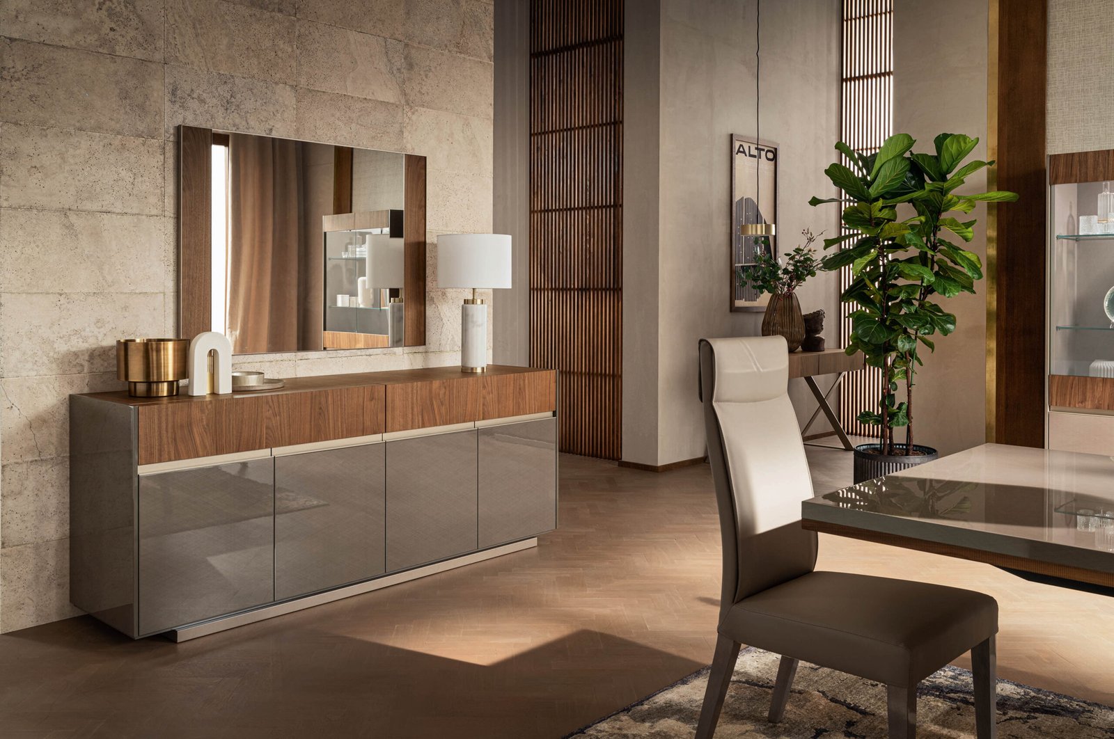 Corso Como is a dining collection with an appealing combination of gloss lacquered and matt wooden finishes. The brushed look of the Brushed Beige High Gloss finish has a fresh comforting feel perfect for any interior design and colors. Contrasting Walnut Fluted wooden finish executed in matt scratch-resistant finish to serve you for years to come without visible use.